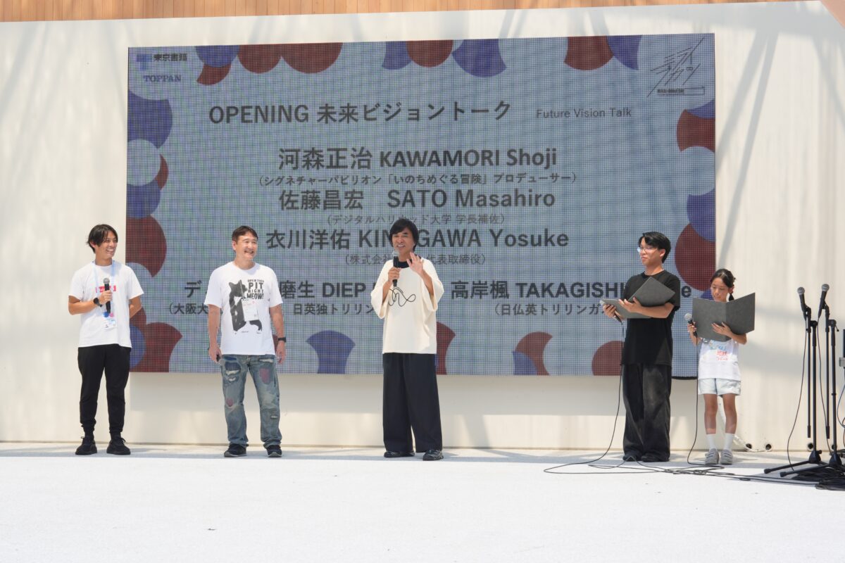 At the opening, Shoji Kawamori, producer of the signature pavilion “LIVE EARTH JOURNEY”, Masahiro Sato, professor at Digital Hollywood University, and Yosuke Kinugawa, CEO of baton Inc., took the stage. They discussed biodiversity and the future of learning, delivering a powerful message to attendees that “it is the children themselves who will protect the future.”