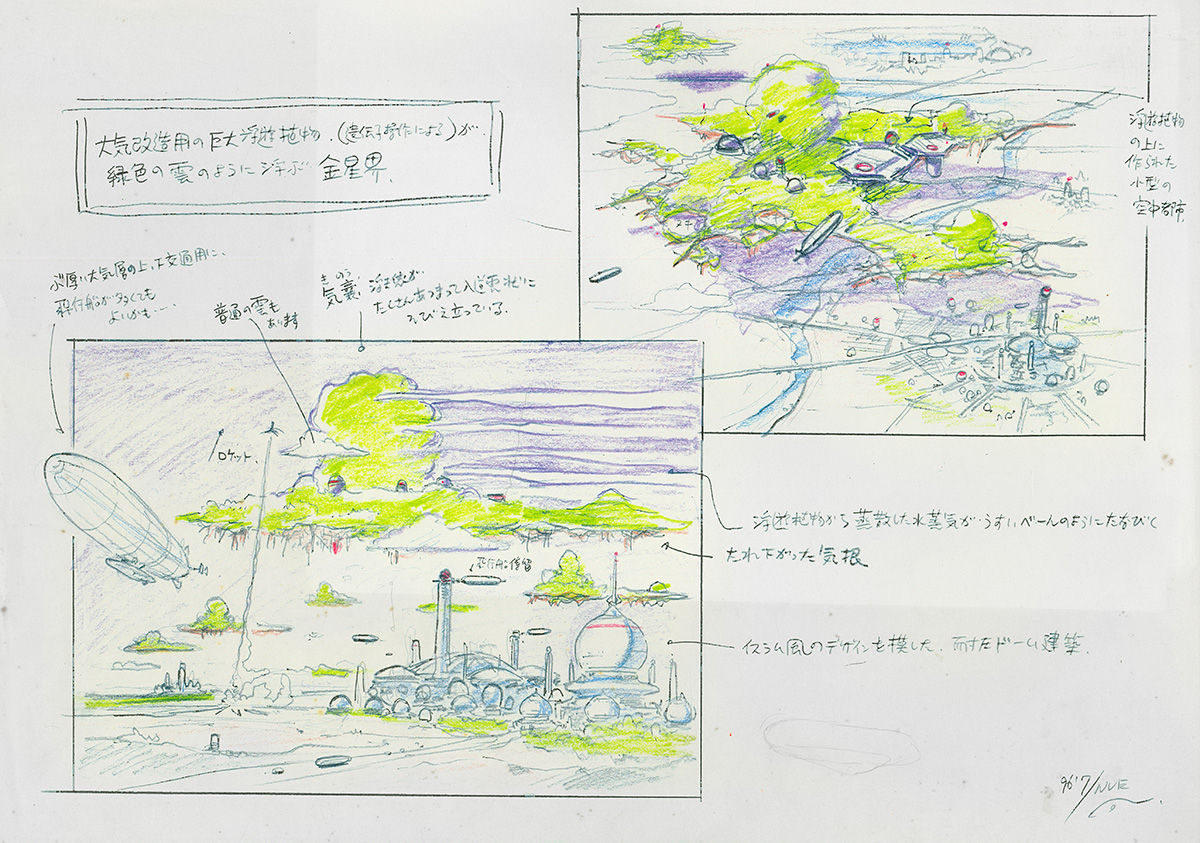 大気改造用の巨大な浮遊植物は、遺伝子操作によって誕生したもの。まるで緑色の雲のように、空中に浮かんでいる。浮遊植物は 散した水蒸気を、薄いベールのようにたなびかせている。人々は地表だけではなく、浮遊植物の上部分にも小型の都市を形成。