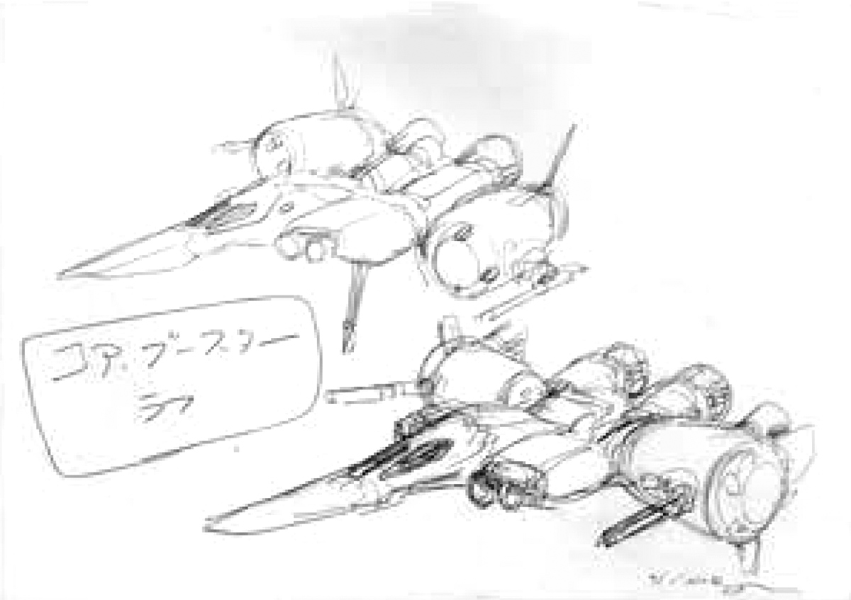 デザインラフコア・ファイター。上半身をコア・ファイターとして、「腕部を展開する」というアイディアも。