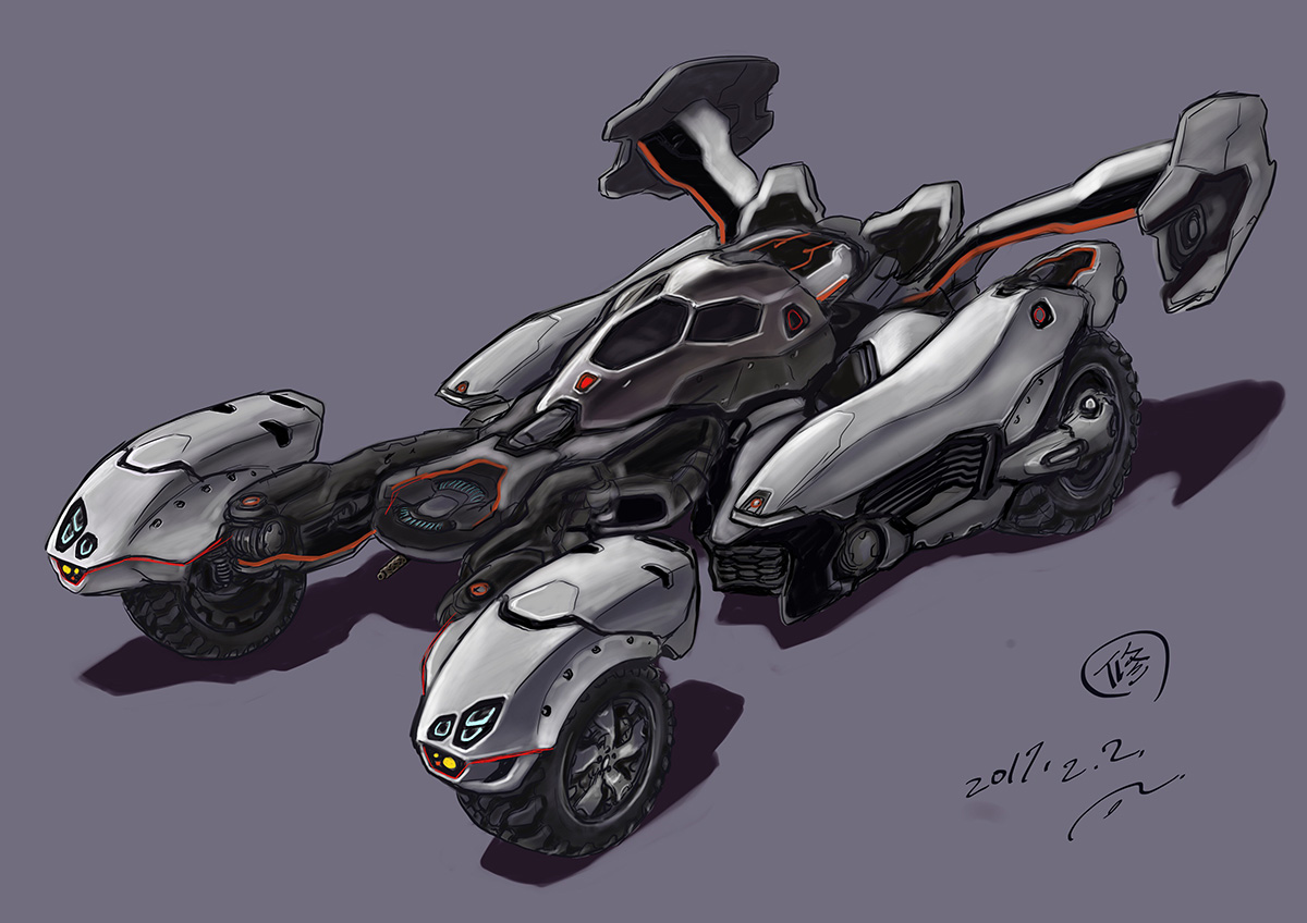ディテールアップ稿 パンドーラ各機河森のラフ稿を元にCGスタッフが3Dモデルを起こし、そのデータに対してディテールアップを加えたもの。CG化以降の河森作品のメカニックデザインの構築プロセスでは、一般的な作業の流れである。